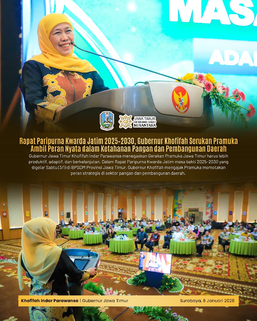 Gubernur Khofifah Ajak Pramuka Jatim Jadi Mitra Strategis Pembangunan Jawa Timur